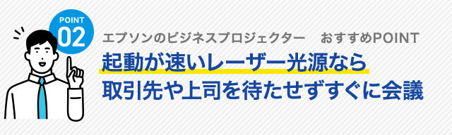 10年前のプロジェクターだから性能がいまひとつ。急いでいるのに、投写までに時間がかかり相手を待たせてしまう…なんてことはありませんか。立ち上がりのわずらわしさを解消するなら、スイッチオンですぐつかえるレーザー光源のビジネスプロジェクターがおすすめ。