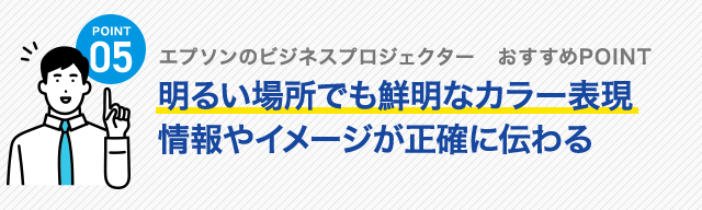 例えば調査資料のグラフを見ながら打ち手を検討する会議や、新商品のPOPを検討する会議などでは、グラフや商品などの色を正確に再現することが求められます。そんなケースではカラーを鮮明に表現できる3LCD方式のビジネスプロジェクターがおすすめ。