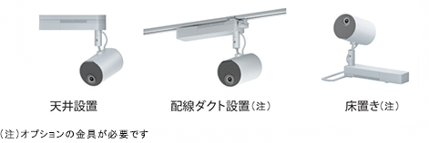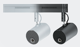 天井・壁掛け設置、配線ダクト設置、床置きに対応。プロジェクターとは思えない照明型のフォルム。選べる2色のカラーリンク。様々な空間に調和し、オフィスデザインの自由度を下げることなく導入をサポートできます。