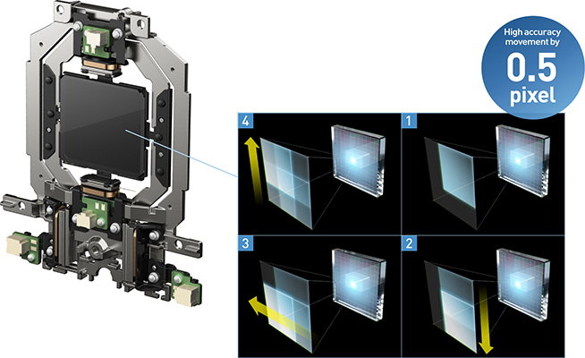 入力した映像の1ピクセルを縦横0.5ピクセルずつずらして重ね、解像度を上げる「ピクセルシフト」で、4K相当の出力を実現しています。