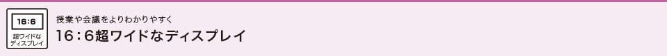 16:6の超ワイドなディスプレイ表示に対応。従来のアスペクト比16:9画面の左・中央・右へのスライド表示や、4:3画面の2画面同時表示ができます。