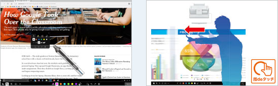 アンダーラインや文字の書き込み、さらに、追加の資料をPCやタブレットからその場で取り込んで貼り付けるなど、プレゼンのポイントごとに注目を集める効果的な演出が可能。一方通行になりがちなセミナーも、集中力の途切れない記憶に残るものに変えていけます。