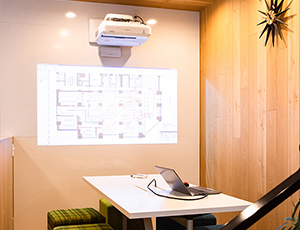 「導入前までは配布資料とホワイトボードを使ってミーティングが行われていました。プロジェクターをの導入によって、図面をホワイトボードに投写し、そこに直接書き込み、保存ができるように。資料の印刷が最低限で済むため紙資源の削減ができるだけでなく、会議後の情報共有もスムーズになりました。データを共有サーバに保存しておけば、あとで見返すときも簡単に検索できるので、業務の効率化につながっています。」
