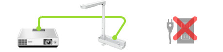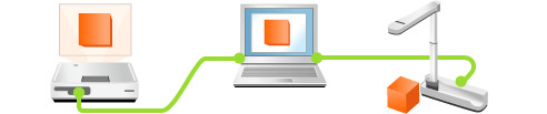 書画カメラ(ELPDC07)はPCと接続が可能なので、付属のソフトウェア(注1)をPCにインストールすることで、書画カメラで撮像している画像をPCの画面上で見ることができます。また、撮像している画像をPCに、写真や動画として保存することも可能です。さらに、PCとプロジェクターを接続すれば、書画カメラで撮像している画像をプロジェクターで映し出すこともできます。