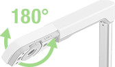 180度回転させられるカメラヘッドは、限られたスペースでも、対象物を固定したまま、様々な角度から映すことができます。