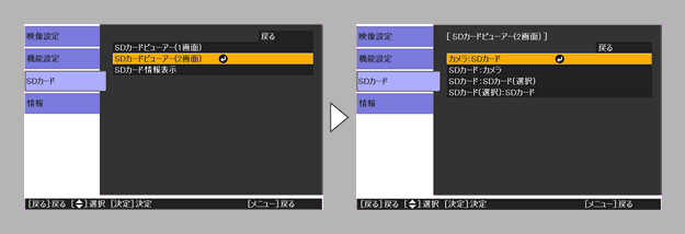 書画カメラの画像と、SDメモリーカードの画像を同時に映し出す、2画面表示機能