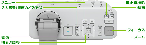 10倍デジタルズームや入力信号の切り替え、LED照明の明るさ調整などは、付属のリモコンや書画カメラ本体に配置されたボタンで、簡単に操作することができます。
