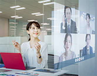 プロジェクターの大画面なら、資料と参加者を2画面で投写しても相手の表情までしっかり見ることができます。出張や面会が制限される中、リモートでのコミュニケーションを円滑にし、ビジネスを支えます。また、広めの会議室で間隔を空けて座る場合でも、大画面で資料の共有ができるので、参加者にしっかりと内容を伝えることができます。