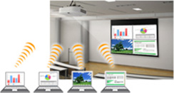 Epson iProjection(for Windows®/MacOS)PC・スマートフォン・タブレットからワイヤレスで同時に投写が可能。