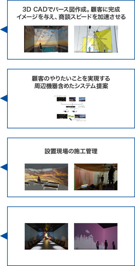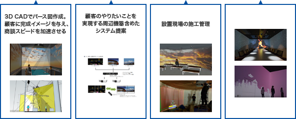 お客様がご検討されているプロジェクターを活用した空間演出の内容を伺って、お客様のやりたいコトを実現します。