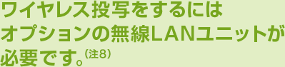 (注8)無線LANが標準搭載モデルもございます。詳細については各製品紹介ページをご確認ください。