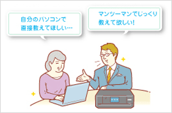 これからプリンター、スキャナーでいろいろな使い方を楽しみたい。そんなお客様のペースにあわせた個人レッスンを行います。