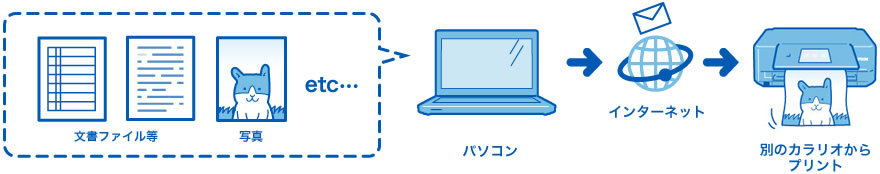 PCのデータを指定のカラリオに送付してプリント!通常のプリントと同じ操作で、離れた場所のカラリオにプリントアウトできます。