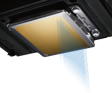 ピエゾ素子の繊細な電圧制御により、正確にインクを吐出。インク着弾形状と制度を高め、高画質と高速印刷を両立しています。