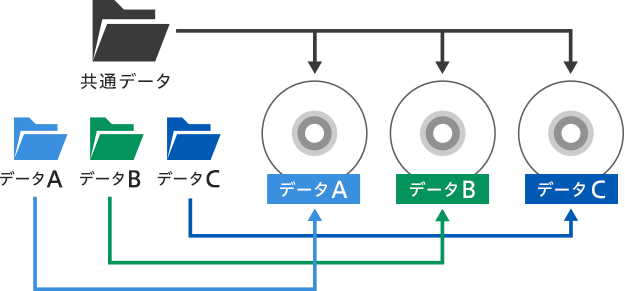 共通データの他、ディスクごとに設定した個別データの書き込みが可能です。