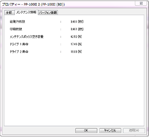 メンテナンス情報タブではドライブ寿命や廃インクのメンテナンスボックス空き容量が確認でき、突然のトラブル発生を回避することができます。