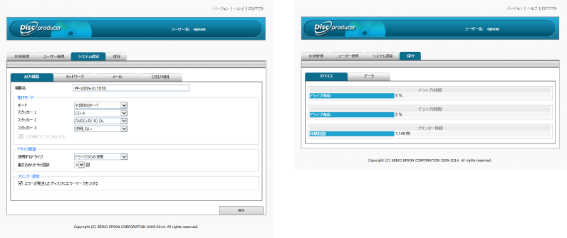 PP-100NEⅡ本体内蔵Webアプリケーション EPSON Total Disc Net Administrator