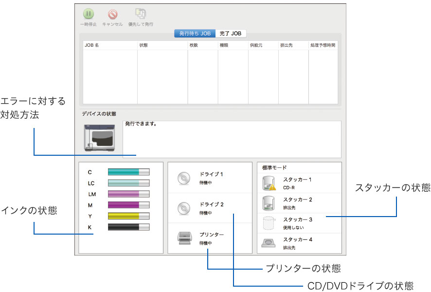 EPSON Total Disc Monitorは、ディスク デュプリケーターの現在の状態、インク残量、JOB 情報などを表示するソフトウェアです。