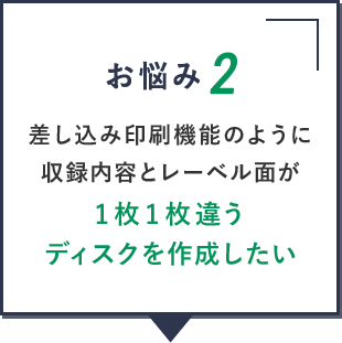 お悩み2 差し込み印刷機能のように収録内容とレーベル面が1枚1枚違うディスクを作成したい