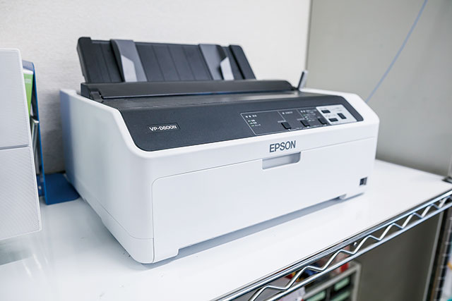 エプソンのドットインパクトプリンター VP-D800N購入のきっかけは、それまで使っていたプリンターの故障です。従来メーカーの後継機種が30万円近くもする高額製品のため、同社では新たな機種への変更を含めた、さまざまな検討が行われました。情報収集の一環でエプソンのインフォメーションセンターに電話した際、従来メーカーの後期機種の半額以下となるエプソンのVP-D800Nと「検証用機材貸出サービス」の提案を受けたといいます。「とても親身に話を聞いていただき、さまざまな有益な情報をいただきました。特に、『検証用機材貸出サービス』を知ることができてよかったです。業務フローを変えずにプリンターを入れ替えることが可能なのか、当社の印刷条件をクリアできるのか、機能性や操作性は問題ないのかなど、実際にVP-D800Nを使って確認することができました。業務フロー的にも機能的にもまったく問題ありませんでしたし、コスト的にも大きなメリットがあるので導入を決めました」と、米山様はVP-D800N導入の経緯を説明します。