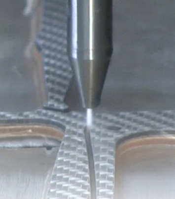 ウォータージェット加工とは水の噴射で金属などをカットする加工です。水を3000気圧(320Mパスカル)程度加圧し、速度マッハ2~3の高速水流を発生させ、水流の噴出した先で研磨材(天然石)を混合し、約φ1mmの穴(ミキシングノズル)から噴出することでカットを行います。加工時に熱が発生しないため、素材を変質させないことが大きな特徴で、金属、プラスチック、樹脂と多彩な素材をカットすることが可能です。