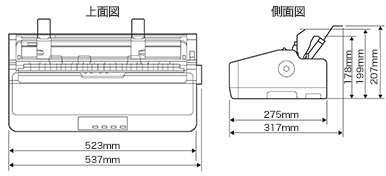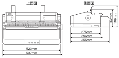 | 外形寸法(W×D×H) | 523mm×296mm×162mm(後方・上部用紙サポート除く、操作ノブ除く) | |