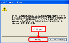 5 | 右の画面が表示されたら[続行]ボタンをクリックします。