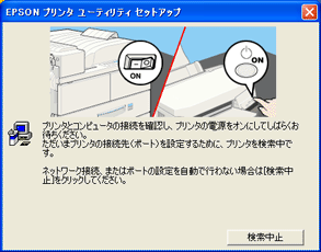 5 | 右の画面が表示されたら、プリンタの電源をオンにします。