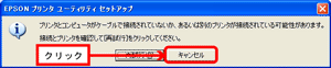 プリンタをパラレルケーブルで接続している場合に、手順5のポイントの画面で[キャンセル]ボタンをクリックすると、右の画面が表示されます。 |