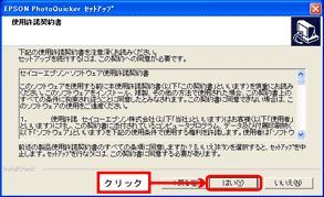 4 | 使用許可契約書の内容をご確認いただき、[はい]ボタンをクリックします。