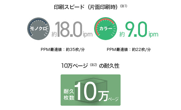 - (注1)ipm(image per minute)は、1分当たりに印刷可能な面の数。