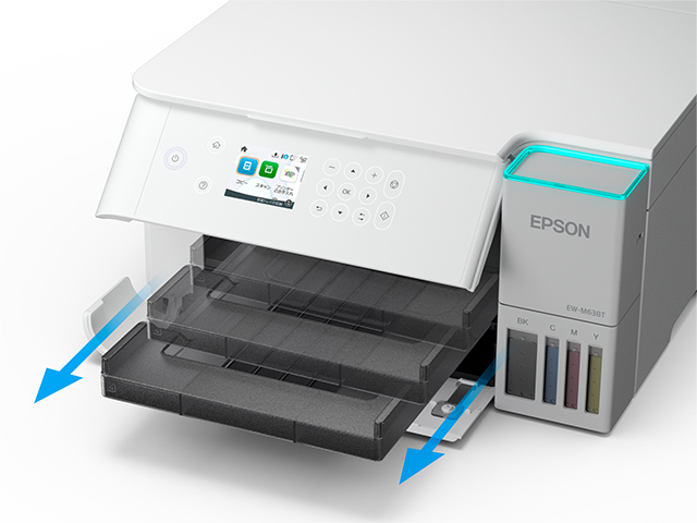 プリントのとき、排紙トレイを自動でオープンします。排紙トレイを引き出す手間が省け、離れた場所からプリント指示を出したときなどでも、プリンター近くまで行く必要がありません。