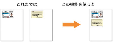 IDカードコピー機能を使用すると、IDカード(免許証、保険証など)を1枚の用紙の片面にコピーできます。