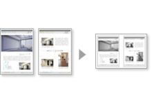 2枚のA4原稿をA4 1枚に縮小し割り付けてコピーできます。両面印刷でもできます。(B5原稿でも可能です。)
