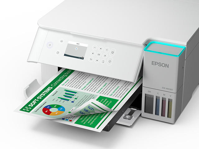 エコタンク搭載モデルはインクジェット方式なのでウォームアップ時間が短く、最初の1枚から高速で印刷できます。一度の印刷が少量なら、レーザープリンターより速く印刷できる場合があります。