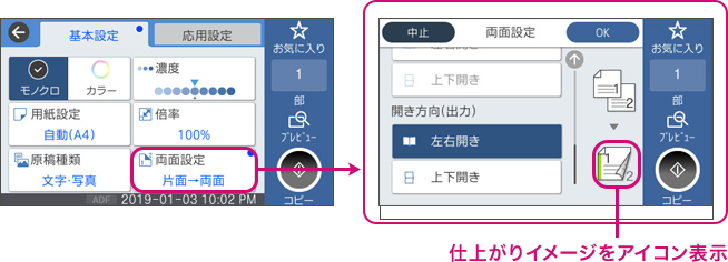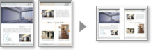 2枚のA4原稿をA4サイズ1枚に縮小し、貼り付けコピーできます。両面印刷も可能。(B5原稿でも可能。)