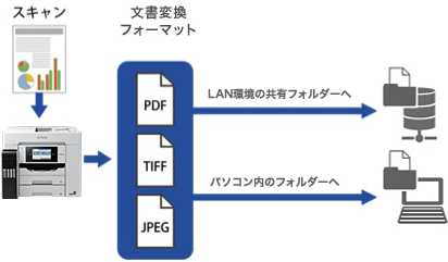 本機能ではプリンター本体だけでこれらの操作が可能に。多彩な転送機能で、スキャンデータの幅広い活用に貢献します。