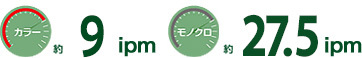 ADF(オートドキュメントフィーダー)使用時のスキャンスピードがカラー原稿で約9ipm、モノクロ原稿で約27.5ipm(注1)と高速に。業務効率向上にも貢献します。