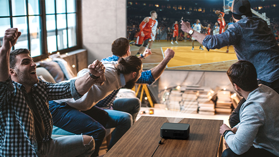 例えば、最近話題の「モバイルプロジェクター」は、バッテリー内蔵で手のひらに乗る小型軽量がポイント。さらにWi-Fi®機能とネット動画再生機能を搭載し、完全ワイヤレスで大画面投射が可能。しかも価格も3万円前後からとお手頃です。映像の明るさや画質は限定的ですが、テレビだと高価で設置も大変な80型~100型の大画面映像を、簡単に映し出すことができます。好きなコンテンツ、俳優やアーティストを等身大以上で見られるのは、ファンとしてはこの上ない悦びでしょう。大画面ならではの魅力と言えます。