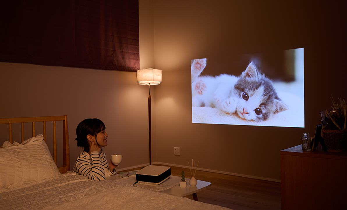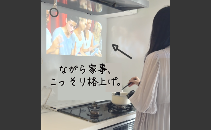 お部屋にいる家族・友人みんなと、同じコンテンツを”迫力ある大画面“で一緒に楽しむ体験がここに。リビングにいても、キッチンにいても、ダイニングにいても、大画面だからみんなで一緒にコンテンツを楽しめます。