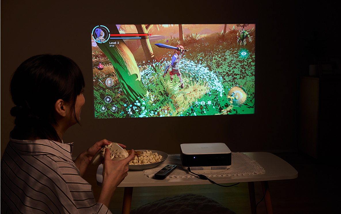 低遅延だから、ストーリーゲームやリズムゲームなど、タイミングが重要なゲームも大画面で楽しめます。キャラクターの表情や背景のディテールも鮮明に見え、物語の世界に入り込んだような感覚に。コントローラーの操作がダイレクトに画面に反映されるので、ひとりでも、友達ともたっぷりゲームを楽しめます。