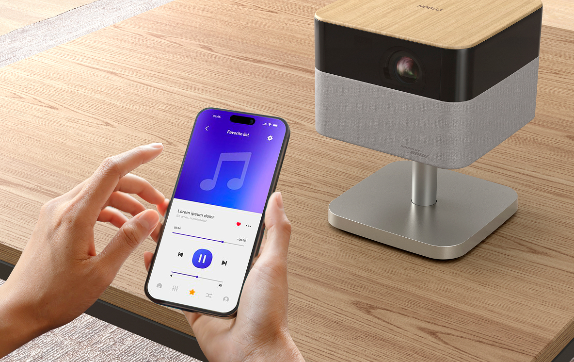 「今日はここに写そうかな」と決めたら電源を入れて、あとは数秒待つだけ。「自動台形補正」機能によりプロジェクターが壁との距離や角度を認識して、ゆがみのない投写を実現します。