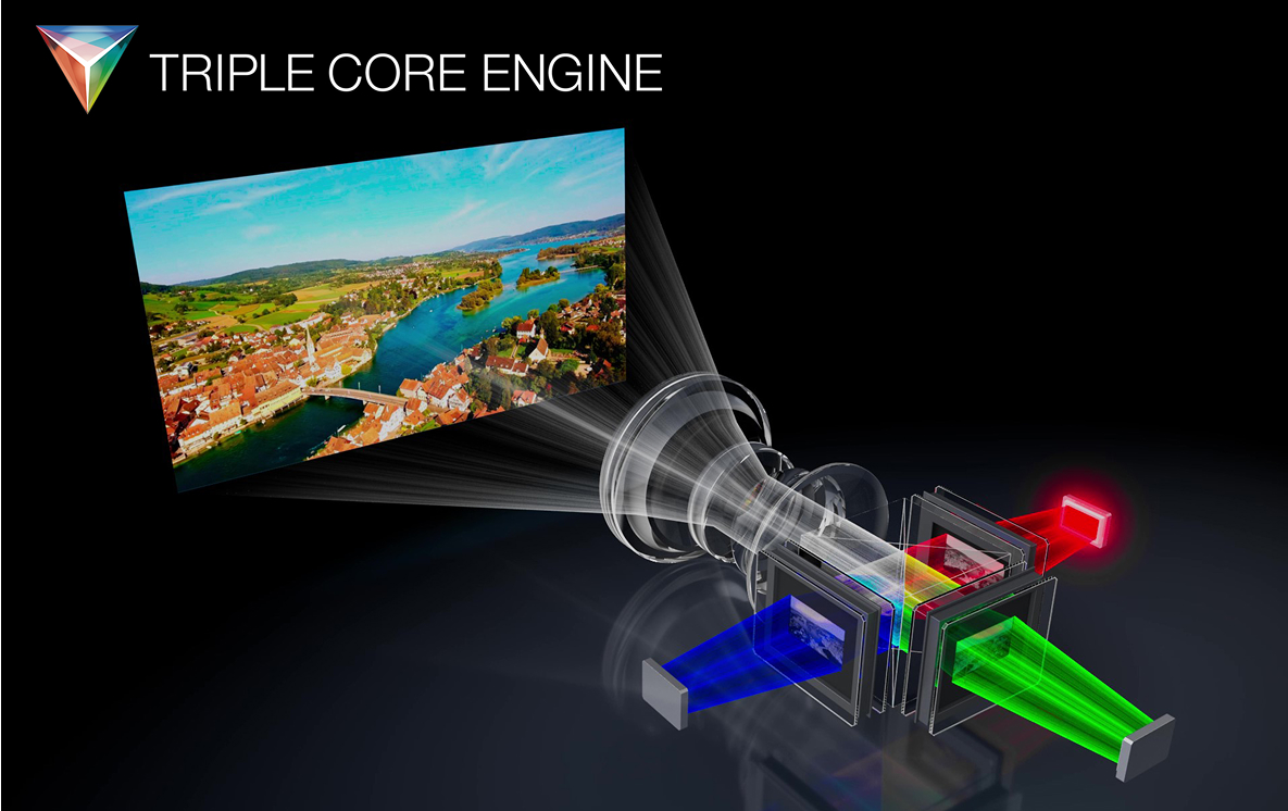 キレイな色の秘密は赤・青・緑の三原色を組み合わせた新光学エンジン「TRIPLE CORE ENGINE」。従来より赤と緑の色域が広がり、明るさを落とさずリアルな鮮やかさで、ライブ映像もまるで現地にいるような色味で楽しめます。