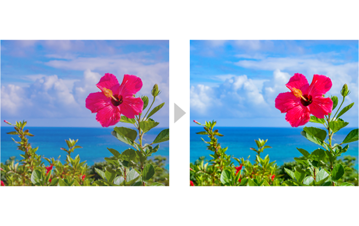 HDRエンハンス、ローカルコントラスト、フレーム補間、ダイナミックカラーブースターなどの映像補正機能を搭載。細部まで鮮やかで、なめらかな映像体験を楽しめます。