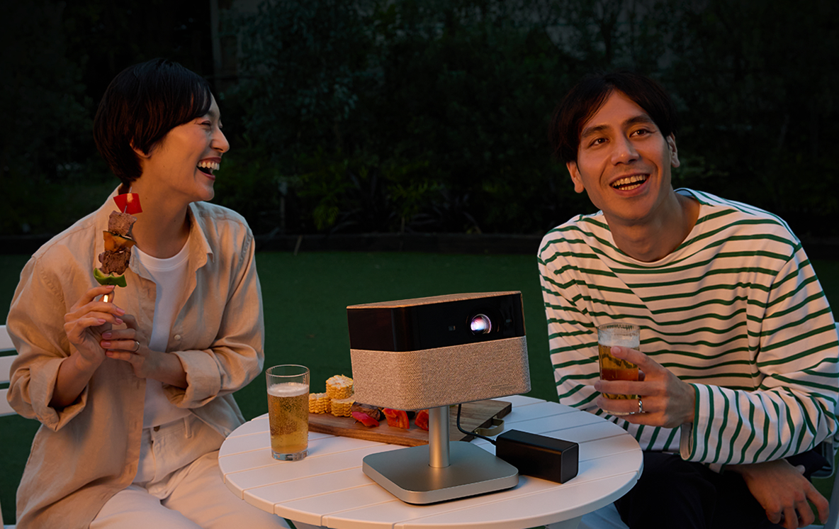 Power Delivery対応のType-Cポートを搭載し、大容量モバイルバッテリーからの給電に対応。コンセントに接続できない場所でも駆動でき、キャンプやベランダ、庭など電源が確保しにくいシーンでも大画面で映像を楽しめます。持ち運びやすく、自由度の高い使い方を実現できるのが魅力です。リビングや寝室に限らず、あらゆる場所がシアタールームに変わります。週末のアウトドアや家族の集まりなど、特別なひとときをより盛り上げてくれます。