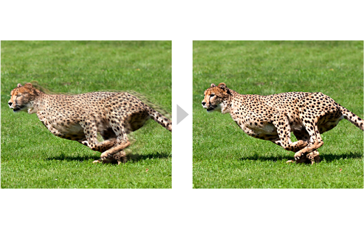 前後のフレーム(コマ)を比較して中間のコマを自動生成する、フレーム補間技術。例えばオリジナル60フレームの映像であれば、その間に中間画面を生成・挿入することで120フレーム/秒で表示。さらに、フレーム補間ICの搭載により、映像処理の精度とスピードがアップ。