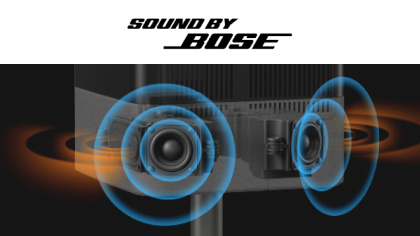 Sound by Boseテクノロジーによる、臨場感あふれるオーディオ体験を実現するステレオスピーカーを搭載。リビングやベッドルームを、豊かな低音とバランスのよい音の広がりで満たします。