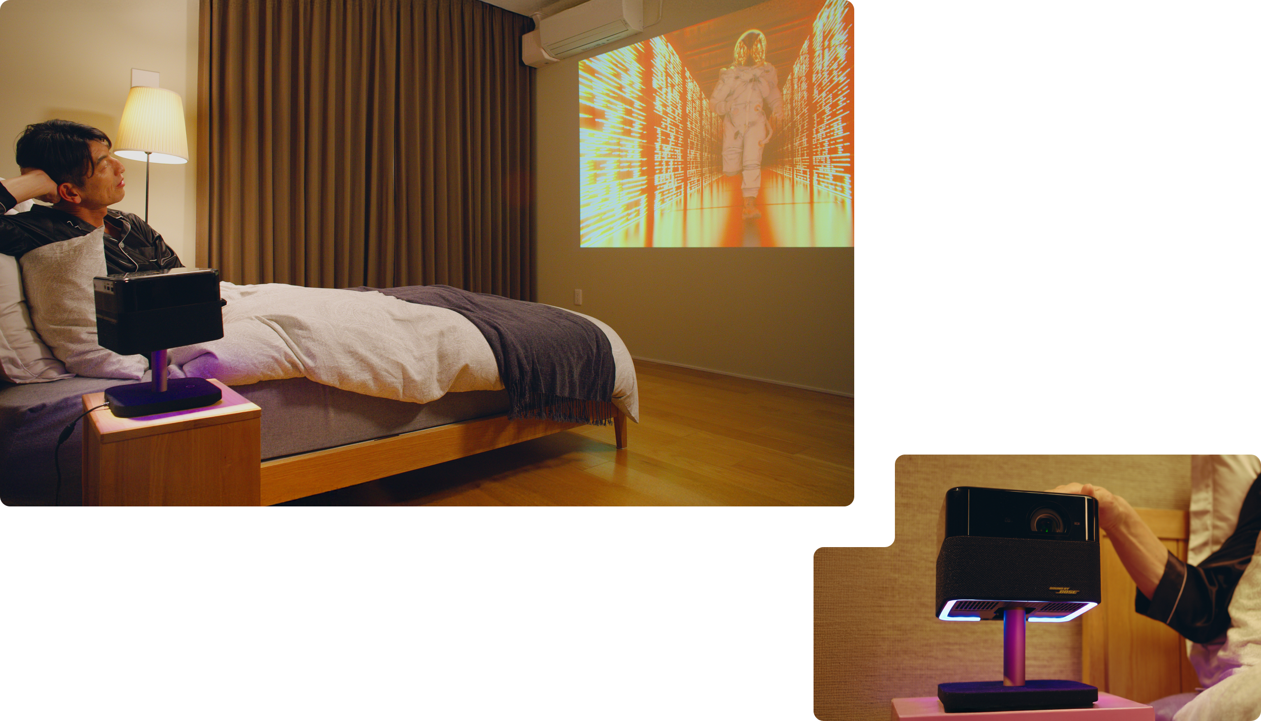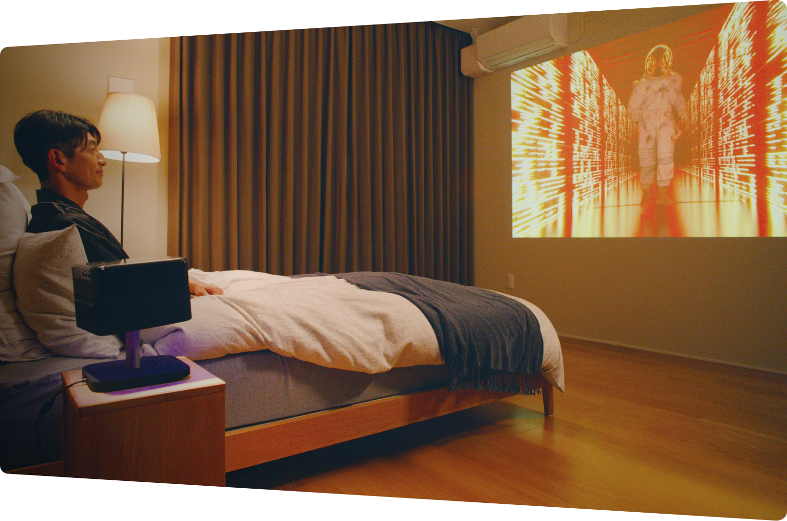 EF-73はプロジェクターでもありますが、間接照明としてもお部屋を飾ります。アンビエントライトは、やわらかい光でお部屋のムードを演出します。