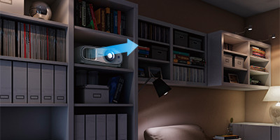 画質劣化の少ない光学シフトを搭載し、上下60%、左右24%という広い可動範囲を実現。スクリーンの正面でなくても設置できます。