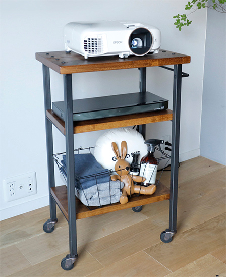 ワゴンの下に、Blu-ray Disk™ レコーダーやゲーム機、タブレットなどを置いて、プロジェクターとつなげておけば、もっと便利に使えます。